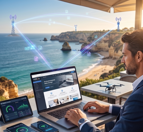 Mas não nos limitamos a ligar dispositivos; ligamos o seu negócio ao sucesso. Combinamos a potência de uma infraestrutura de rede sólida com as mais avançate estratégias de Marketing Digital e Social Media, criando uma presença online que se destaca e converte. Somos o parceiro tecnológico de referência para quem procura performance sem compromissos no Algarve.